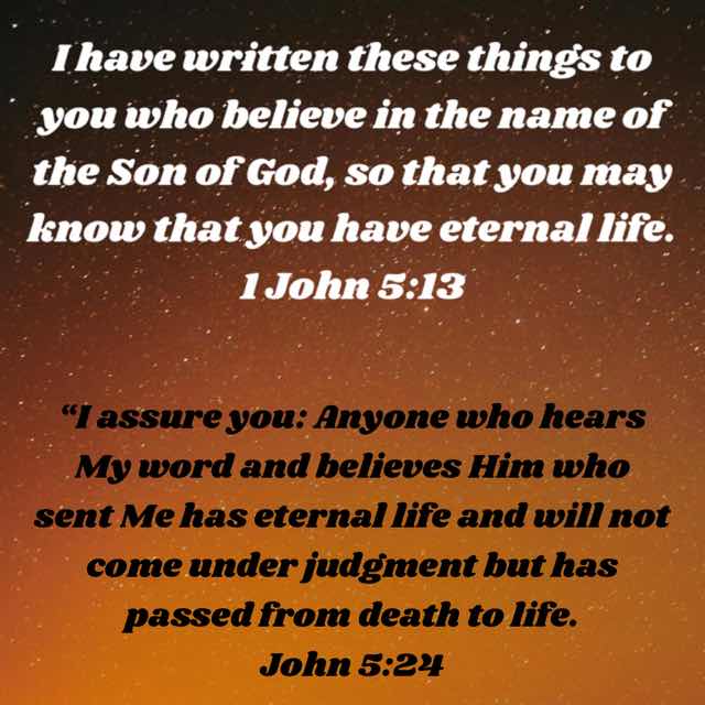 “I have written these things to you who believe in the name of the Son of God, so that you may know that you have eternal life.”